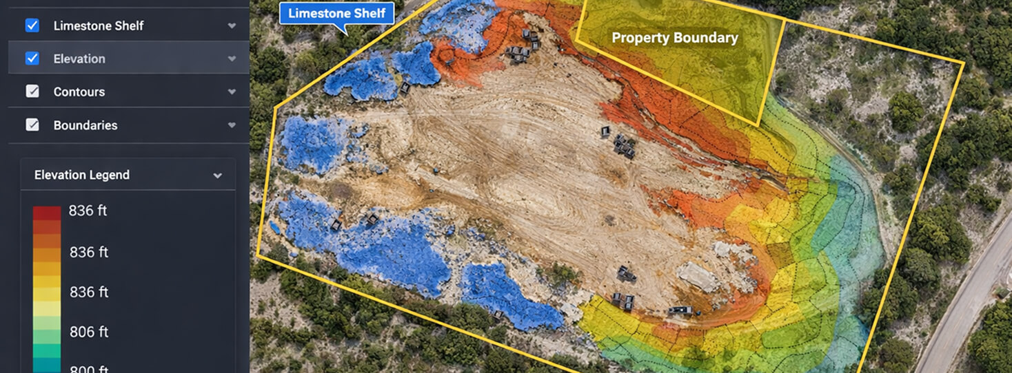 Georeferenced orthophoto, elevation model, and limestone shelf detection for your pool site. Delivered within 48 hours of site visit. Yours to keep regardless of whether we work together.
