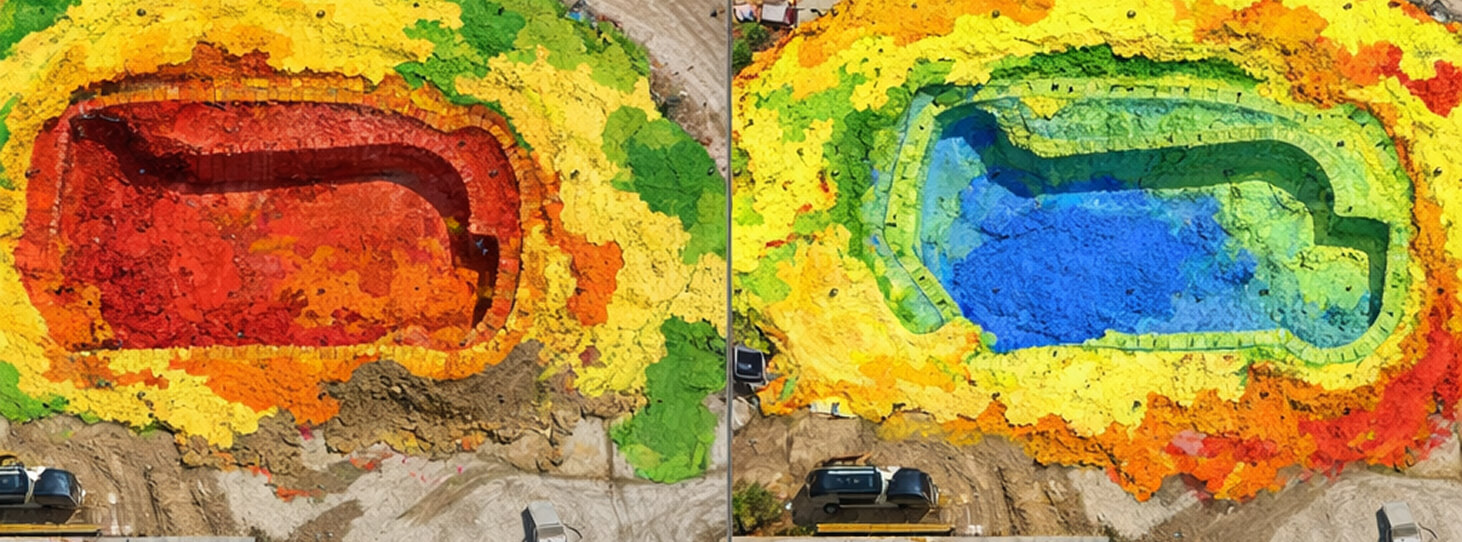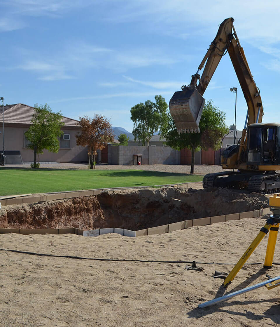 Around the pool shell. Cut/fill verified to plan with RTK. Drainage modeled. Grade confirmed before the next trade arrives.