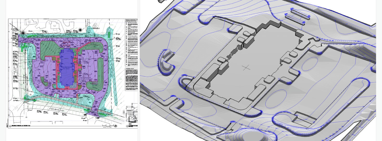 Hydraulic rock hammer. On-site rock mill. Pre-excavation 3D subgrade model. You see the limestone shelf in 3D before your crew shows up. No surprises. No change orders. No broken rental equipment.