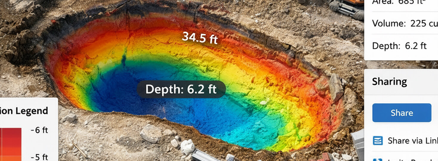 Your homeowner gets a shareable 3D model of their completed excavation. Your engineer gets verified grades. Every cubic yard accounted for. Every depth verified. The kind of documentation that turns your one-time client into a referral source.