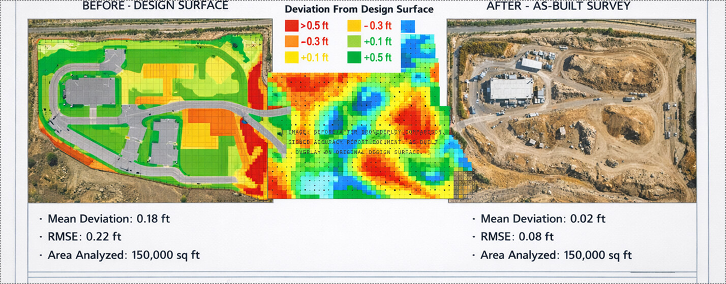 When the job is done, you don't get a handshake and a gut feeling. You get a signed accuracy report, a CAD/BIM-ready as-built digital twin, and zero disputed yardage. Every cubic yard accounted for. Every grade verified. Documentation that holds up in any conversation — with your client, your engineer, or your GC.
