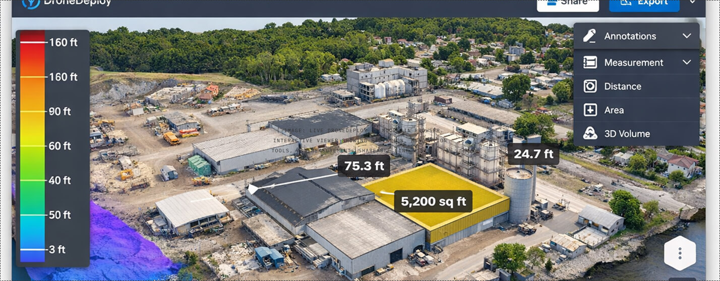 GEOREFERENCED 3D MODEL · DRONEDEPLOY PLATFORM · SHAREABLE · MEASURABLE · PERMANENT